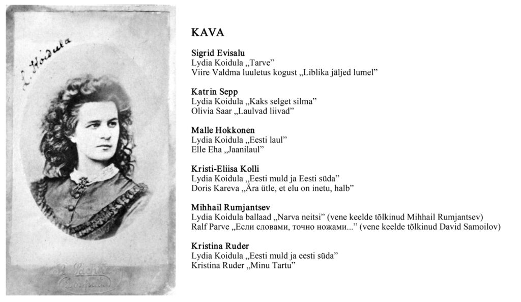 Luuletuste elav ettekandmine on ju ehedaim viis seda kunsti isikupäraselt ja samas luuletaja sõnu esile tõstes avada. Kuulsime kuut erinevat tõlgendust Koidula luuletustest ning lisaks valis iga etleja esitamiseks ühe vabalt valitud autori luuletuse.
