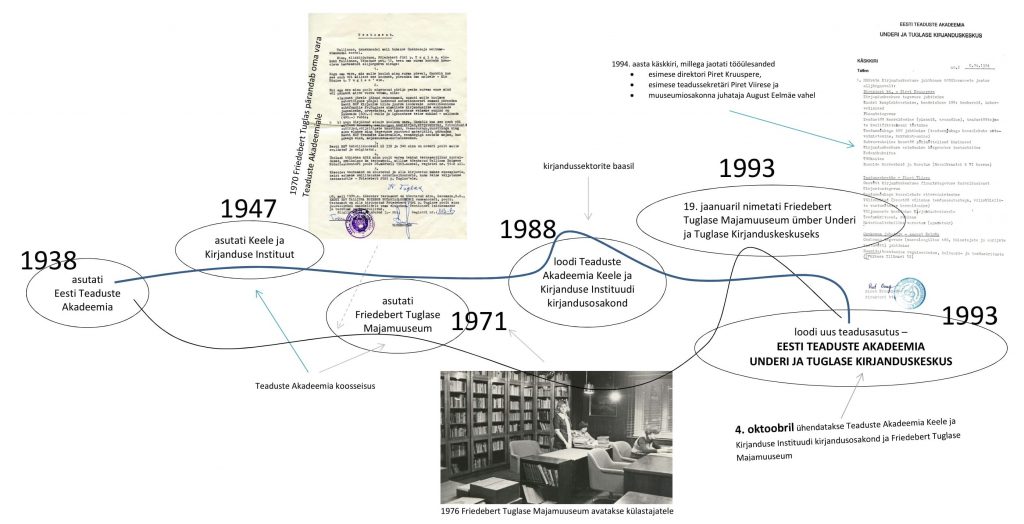 4. oktoobril 1993 ühinesid Teaduste Akadeemia Keele ja Kirjanduse Instituudi kirjandusosakond ning Friedebert Tuglase Majamuuseum. Loodud oli uus teadusasutus – Eesti Teaduste Akadeemia Underi ja Tuglase Kirjanduskeskus –, mille põhiülesandeks sai „eesti kirjanduse ainestiku kogumine, uurimine ja publitseerimine“.