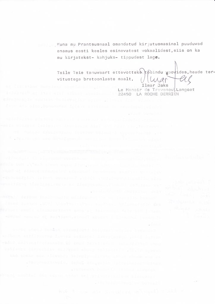Jaan Unduski arvustus Ilmar Jaksi romaanile „Eikellegi maal“, mis ilmus vahetult enne augustiputši ja mille juures on ka foto Ilmar Jaksist ja Jaan Unduskist Pariisis 1990. aasta mais.