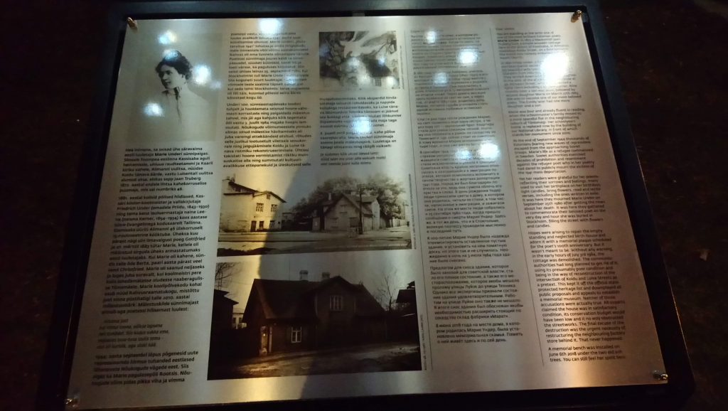 „Tänavu suvel paigaldasime maja asemele mälestuspingi Marie Underile ja nüüd tuleb selle kõrvale mälestustahvel sisuka ülevaatega paiga ajaloost,” selgitas Kesklinna vanem Vladimir Svet. „Aitäh Underi ja Tuglase Kirjanduskeskusele hea koostöö eest kirjaniku mälestuse jäädvustamisel, tänu millele võime kinnitada, et ehkki Underi sünnimaja pole säilinud, jääb tema pärand igavesti alles.“