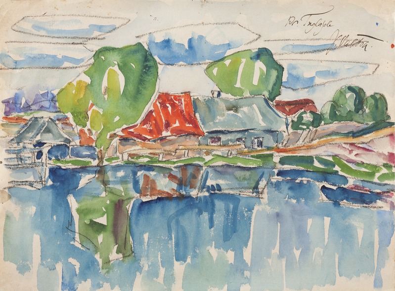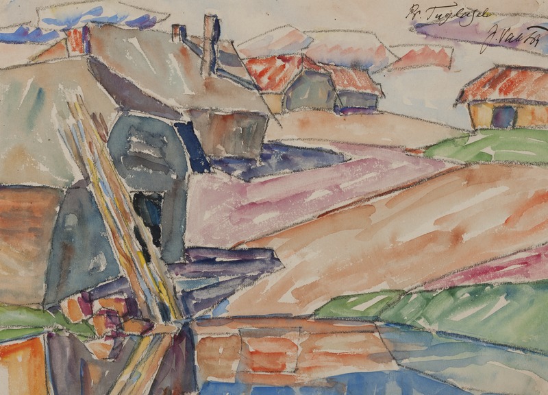 Jaan Vahtra, „Maastik majadega“ ja „Maastik veekoguga“ (1920. aastate esimene pool). Kaks Jaan Vahtra (1882–1947) akvarelli on loodud 1920. aastate esimesel poolel. Mõlemad teosed on kunstniku kingitus Elo Tuglasele (seda näitavad pühendused töödel) ning nende motiivid pärinevad Lõuna-Eestist Kasaritsa-Puiga-Verijärve kandist. Nimelt käis Tuglas 1921. aasta aprillis koos Vahtraga omale suvituskohta otsimas ning leidis selle Puigal. Koos Eloga jõuti suvitama maikuu lõpupoole ning jäädi veidi enam kui kaheks kuuks, mille kestel tehti ümbruskonnas pikki matku, seda sageli Vahtra juhtimisel, kes kohalikuna tundis hästi sealset loodust ja kaunemaid paiku. Järgmisel aastal suvitati sealsamas: oma eluloolistes märkmetes kinnitab Tuglas, et 26. septembril oldi veel Puigal. Tuglase ja Vahtra tööalased sidemed olid sõlmunud 1919. aastal ja selle tulemusena kaunistasid Tuglase toimetatud kirjandusliku kuukirja Ilo kolmandat numbrit (mis ilmus jaanuaris 1920) kaheksa Vahtra puulõiget. Arvestatav järg tuli küll palju hiljem, kui aastail 1935–1936 ilmusid Tuglase „Kriitika“ kuus köidet Vahtra kujundatud kaantega ja 1939/40 „Kogutud novellid ja väikepalad“ samuti tema kujunduses. Usaldusliku suhtluse kestvust näitab aga hulga Vahtra illustratsioonide originaaljoonistuste ja teisendite-kavandite olemasolu Tuglase juures. [NB! Tuglase mälestuskivi Puigal asub Puiga küla pargis.]