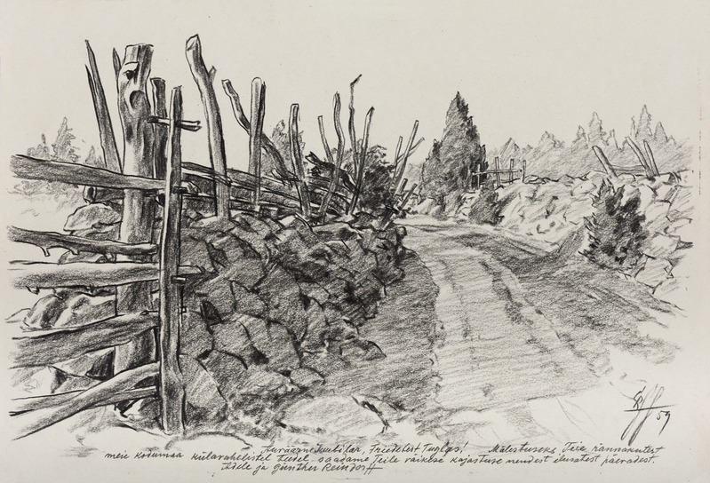 Günther Reindorff, „Külavaheline tee Saaremaal“ (1959) ja „Rannamaastik“ (1959). Günther Reindorff (1889–1974) on esindatud näitusel kahe Saaremaa maastikuga: „Külavaheline tee Saaremaal“ ja „Rannamaastik“, mis mõlemad on loodud 1959. aastal ja kuuluvad sellesse vahetult loodusmuljeist lähtuvasse vaadete sarja, mis murdsid kunstniku varasema viieaastase vaikimise vabakunsti vallas ning juhatasid teed tema suurejoonelise hilisloominguni. Sõsarteosed on kingitud Tuglasele 1961. aastal juubeliks, kuid kinkijad on erinevad. Neist üks on perekond Reindorff (Günther ja tema nahakunstnikust abikaasa Adele), teise kinkijaks aga Välismaaga Sõpruse ja Kultuurisidemete Arendamise Eesti Ühing. On kindel, et põlvkonnakaaslasele kinkis kunstnik suurjuubeliks teose, mis pidi kinkijat iseloomustama parimast küljest, samuti pole raske näha tema suunavat kätt ka teise kinkija suhtes, keda isikuliselt esindas Olga Lauristin. Reindorffid tundsid muidugi Tuglaseid, kuid olid olnud kokkupuutes ka Underi-Adsoniga. Günther Reindorff oli raamatukunstnikuna nendega seotud 1942. aastal, kui tegi Marie Underi luulekogu „Mureliku suuga“ kahele trükile kujunduse, seejuures erinevate kaanepiltidega, ja kaanekujunduse Friedebert Tuglase teosele „Valitud novellid ja väikepalad 1902–1942“.