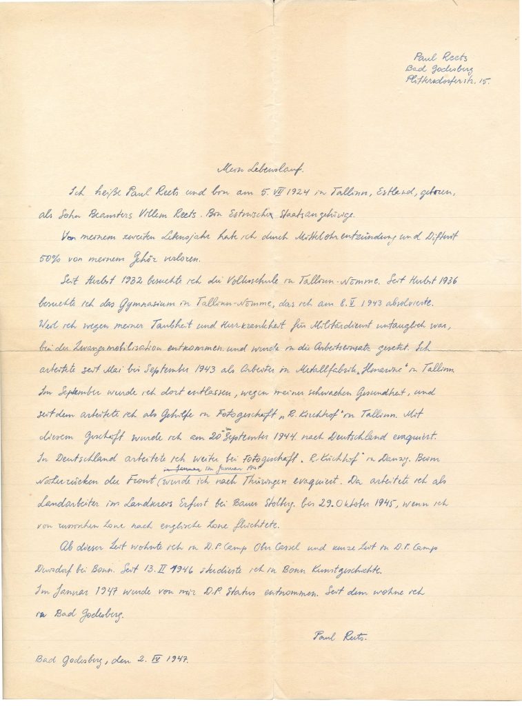 Aastail 1946‒1950 õppis ta Bonni ülikoolis kunstiajalugu, ajalugu ja võrdlevat usunditeadust, püüdes kirjutada doktoritööd esmalt Eesti-Vestfaali arhitektuuri sidemeist XIII–XIV sajandil, seejärel surma ja kuradi ikonograafiast õhtumaises kunstis. Need plaanid luhtusid.