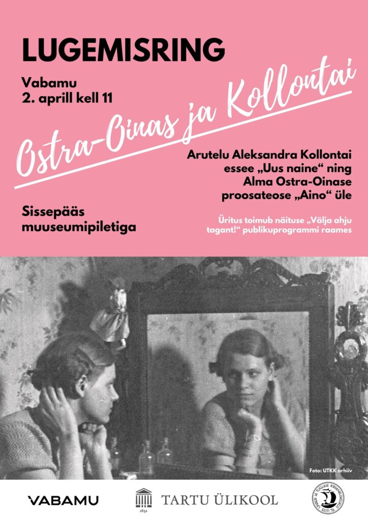 2. aprillil kl 11–13 toimub Vabamus arutelu Aleksandra Kollontai essee „Uus naine“ ning Alma Ostra-Oinase proosateose „Aino“ üle. Lugemine toimub Vabamu ning Eret Talviste (Tartu Ülikool), Merlin Kirikali (Eesti Teaduste Akadeemia Underi ja Tuglase Kirjanduskeskus), Tanar Kirsi (Tartu Ülikool) ning Piret Põldveri (Kirjastus Maurus) eestvedamisel. Üritus toimub näituse „Välja ahju tagant!“ publikuprogrammis.